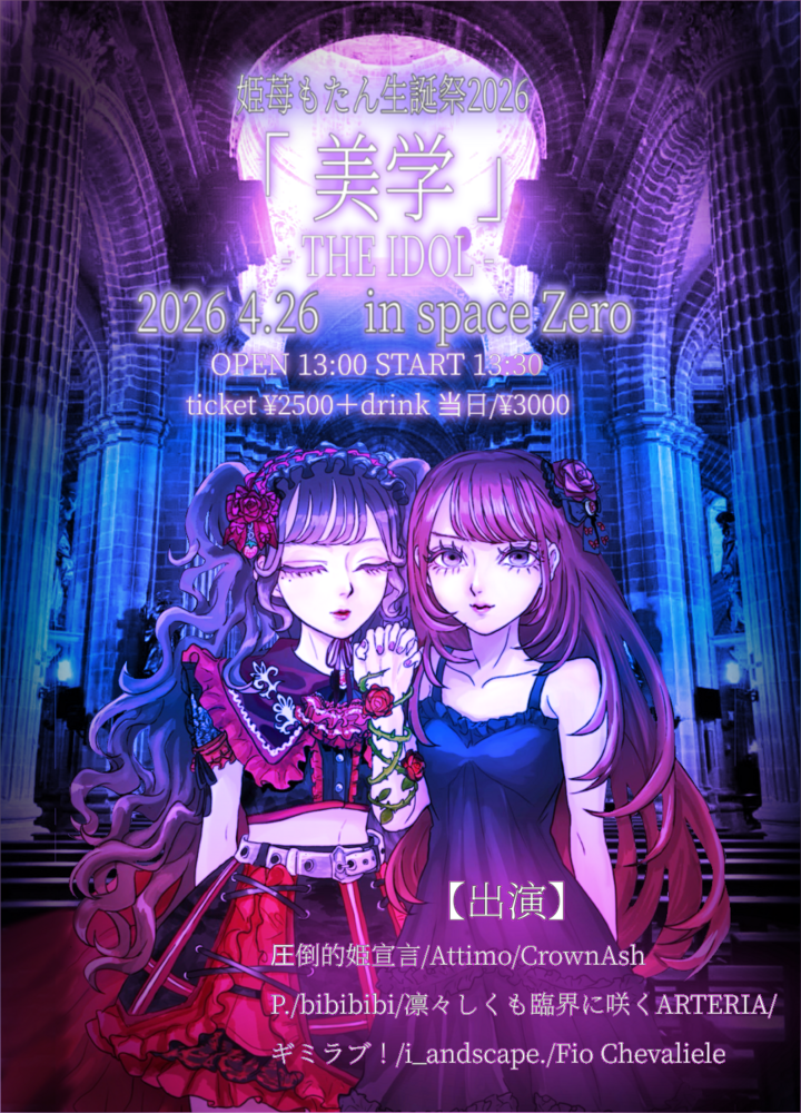 姫苺もたん生誕祭2026 「美学」 THE IDOL SCHEDULE 2026/04/26(日) 姫苺もたん生誕祭2026 「美学」 THE IDOL ■日程2026年4月26日(日)■会場spaceZero■時間OPEN 13:00/START 13:30 ■料金2,500円(当日券3,000円)※入場時1ドリンク代別途必須 https://tiget.net/events/478352 URLをコピーする 報告する