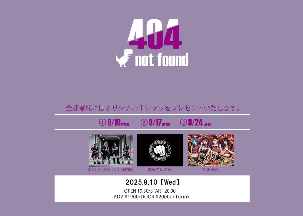 404 not found① SCHEDULE 2025/09/10(水) Neo Brotherz 【ARTERIA Live 情報】 404 not found① ■日程 2025年9月10日(水) ■会場 Neo Brotherz ■時間 OPEN 19:30 / START 20:00 ■料金 前売:¥1900/当日:¥2,400/+1Drink チケット https://tiget.net/events/427508/ TIGET URLをコピーする 報告する