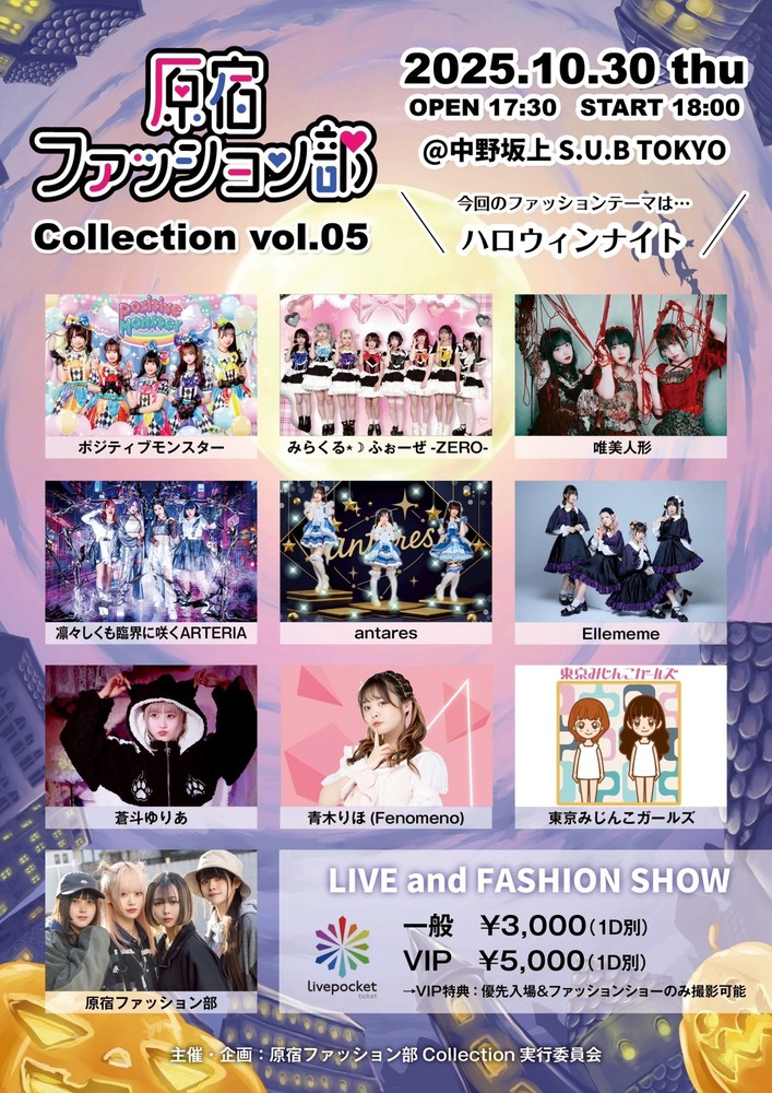 「原宿ファッション部Collection vol.5」 SCHEDULE 2025/10/30(木) 中野坂上S.U.B TOKYO 地図を表示 【#アルテリアライブ情報】 「原宿ファッション部Collection vol.5」 ■日程 2025年10月30日(木) ■会場 中野坂上S.U.B TOKYO ■時間 OPEN 17:30 / START 28:00 ■料金 一般 3,000円 /当日3,500円 ※別途1D VIPチケット:5,000円 チケット https://t.livepocket.jp/e/hp2l_ チケット URLをコピーする 報告する